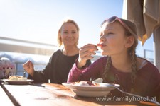 Freuen Sie sich auf die Wärme im Hotel. Den Apfelstrudel. Den Aufguss in der Sauna. Den Zirbenduft.